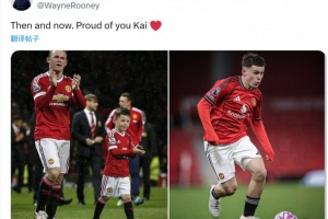 鲁尼社媒晒出两张照片,分别是带着儿时的凯·鲁尼在老特拉福德谢场,以及凯·鲁尼老特拉福德首秀的照片,配文:“过去和现在,始终为你感到骄傲,凯。”