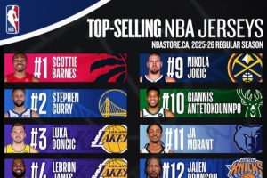 相关报道>>此前NBA官方公布了25-26赛季上半赛季球员的球衣销量排行。