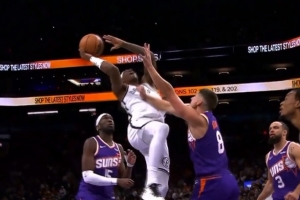 GIF-曼恩神仙球打进,阿伦推人吃到一级恶意犯规