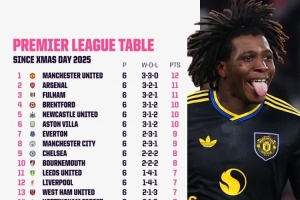 体育资讯1月28日讯 据Opta统计,自圣诞节以来,没有任何球队在英超的胜率超过50%,曼联拿到12分同期最多。