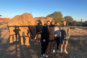 当地时间周一,皇马后卫赫伊森与亲友前往马德里野生动物园游览,他在个人社媒晒出与大象的合照。