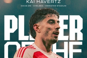 体育资讯2月4日讯 英格兰联赛杯半决赛次回合,阿森纳主场1比0击败切尔西,最终以总比分4比2挺进决赛。赛后,阿森纳官方宣布,哈弗茨当选本场比赛队内最佳球员。