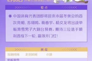 冬奥会早报:今日苏翊鸣坡面障碍技巧决赛 刘少昂林孝埈出战500米