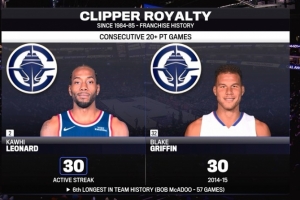 快船队史连续20+纪录是鲍伯·麦卡杜保持的57场