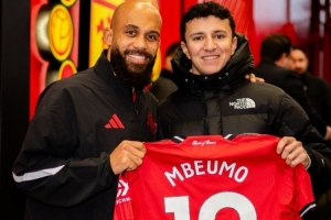F1红牛车队车手哈贾尔造访老特拉福德,观看曼联的比赛,并获赠姆伯莫的球衣,曼联官方社媒晒出照片,对他表示欢迎。