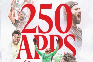 体育资讯2月12日讯 在本轮英超联赛的一场比赛中,利物浦客场对阵桑德兰,红军门将阿利松迎来了在利物浦的第250场联赛出场。
