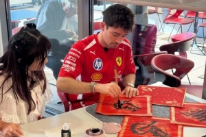 体育资讯2月17日讯 今日是马年大年初一,法拉利官方晒出了勒克莱尔写毛笔字的照片。