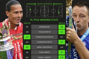 体育资讯2月20日讯 约翰·特里在不久前就他和范戴克谁才是英超史上最佳后卫的争论发表了自己的看法,并比较了相同年龄时的表现。