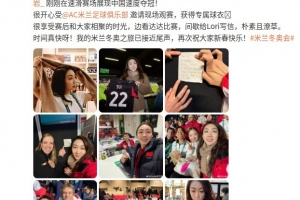 隋文静社媒晒主场观战AC米兰比赛及获赠球衣照,并祝贺宁忠岩夺金