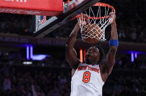 防守建功!布伦森奋力堵枪眼 造成阿门进攻犯规