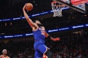 体育资讯2月22日讯 NBA常规赛,尼克斯108-106逆转火箭,赛后尼克斯球星唐斯在场边接受了媒体采访。