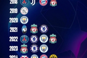 欧冠淘汰赛上半区共6队31次夺冠,下半区仅巴萨1队5次夺冠