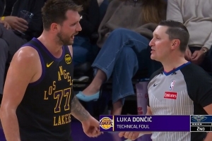 体育资讯3月4日讯 湖人VS鹈鹕上半场,东契奇罚球抱怨小乔丹提前进线,吃到技术犯规。