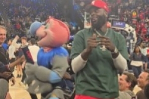 GIF-老熟人!史蒂芬森现身快船主场&吉祥物邀请他一起发T恤