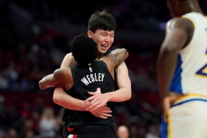 体育资讯3月10日讯 昨日开拓者主场131-111大胜步行者。比赛最后时刻,韦斯利晃倒对手并助攻杨瀚森2+1暴扣,随后韦斯利疯狂庆祝。赛后开拓者队记Casey Holdahl在球队的官方播客中谈到了这次连线。