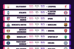 体育资讯03月10日讯 欧冠1/8决赛首回合将于本周中打响,数据机构Opta的超级计算机给出了首回合比赛的胜负预测。