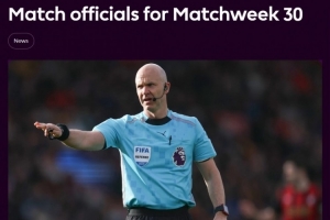 体育资讯3月11日讯 英超官方公布联赛第30轮各场执法裁判,安东尼·泰勒执法曼联vs阿斯顿维拉,克里斯·卡瓦纳执法利物浦vs热刺。