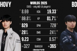 体育资讯11月1日讯 外媒统计Chovy与Bdd数据对比(S15全球总决赛),具体如下: