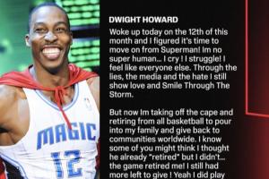 超人脱下战袍!魔兽霍华德长文宣布退役&结束20年篮球职业生涯