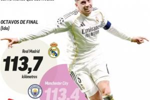 体育资讯03月13日讯 欧冠1/8决赛首回合,皇马主场3-0完胜曼城。西班牙媒体《马卡报》撰文,分析了皇马在本场比赛中展现出的跑动能力。