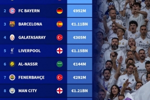 体育资讯11月2日讯 德国转会市场列出了10月份俱乐部页面浏览量排名,皇马、拜仁、巴萨前三。