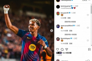 亚马尔赛后社媒晒照庆祝胜利,配文:“坚韧。”