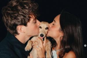 勒克莱尔为这条社媒配文道:“Mr². & Mrs. Leclerc 💍❤️❤️❤️”