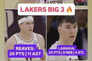赛后,拉拉维亚转发了湖人“三巨头”的数据,东契奇29分11篮板10助攻,里夫斯26分11助攻,拉拉维亚25分8篮板4抢断。
