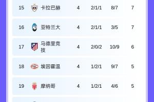 体育资讯11月6日讯 欧冠第4轮全部比赛结束,最新积分榜情况出炉。目前积分榜上,拜仁枪手国米全胜领跑!本菲卡阿贾克斯全败垫底。