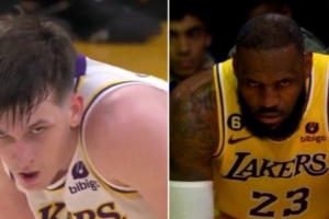 湖人自媒体BronMuse晒出里夫斯和詹姆斯死亡凝视照,并写道:“一旦这两个人回归,联盟就大结局了。”