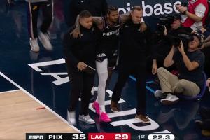 杰伦·格林此前因为左腿筋伤势缺阵了多场比赛,今天他离场时捂着自己的右腿筋部位!
