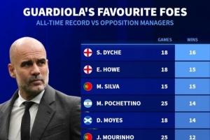 瓜帅执教生涯对阵教练的胜场最多榜