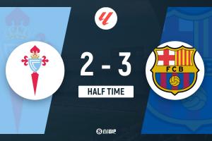 体育资讯11月10日讯 西甲第12轮,塞尔塔坐镇主场巴拉伊多斯市政球场迎战巴塞罗那。上半场,费尔明造点,莱万点射+双响,拉什福德失单刀+中框+助攻,卡雷拉建功,伊格莱西亚斯再次扳平,亚马尔补时进球。半场战罢,巴萨3-2塞尔塔。