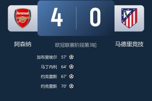 体育资讯10月22日讯 马竞本轮0-4遭阿森纳横扫,西蒙尼在第63分钟做了一次连换3人的调整,巴埃纳、加拉格尔、鲁杰里上场,换下吉梅内斯、冈萨雷斯和科克。
