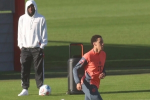 值得一提的是,好友阿方索·戴维斯(25岁/7个半月前右膝十字韧带撕裂)在训练课开始后不久便身着休闲服来到训练场。这位加拿大国脚随着穆西亚拉用手机连放的XXL音响中说唱乐节奏舞动,并为正在进行恢复训练的伙伴欢呼助威。这位左后卫情绪高涨,强劲的节拍响彻拜仁训练基地。
