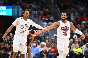 目前比赛进行到第三节,骑士球员加兰突然返回更衣室,此前队友米切尔也是刚刚回到更衣室,好在是没什么大碍已经回到替补席。