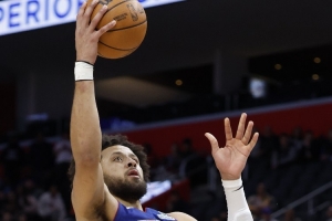 本场比赛,康宁汉姆疯狂出手45次,45投14中,三分11中2,罚球18中16,轰下46分12板11助的三双数据,另有5断2帽进账。