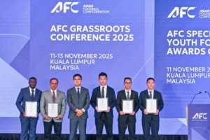 北京时间11月11日,2025年亚足联草根足球大会及“2025亚足联草根足球特殊贡献奖”颁奖仪式在马来西亚吉隆坡隆重召开。由中国足球协会推荐的谭杰荣获“2025亚足联最佳草根足球领导者奖”,青苗联赛摘得“2025亚足联草根足球最佳赛事奖”,为中国草根足球赢得国际赞誉。