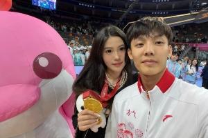 赛后,徐杰女友更新社媒,晒出了徐杰和自己的亲密合照,还有徐杰为自己佩戴金牌的视频。