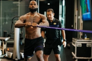 詹姆斯与私人训练师迈克·曼西亚斯