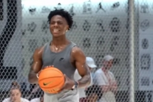 体育资讯11月16日讯 网红甲亢哥在直播中和杜兰特一同训练比试投篮。