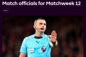 体育资讯11月18日讯 英超官方公布联赛第12轮各场执法裁判,迈克尔-奥利弗将执法阿森纳vs热刺。