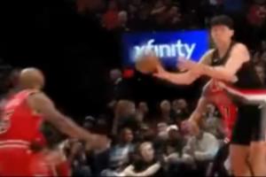 GIF-杨瀚森进攻篮板+不看人传球助攻队友三分!