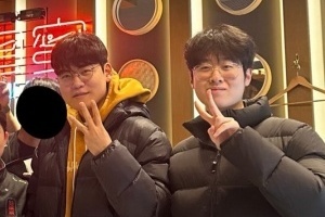 体育资讯11月21日讯 今日有韩国网友分享了近期与Zeus、Gumayusi两人的合影:在照片中两人一人比二;另一人比三。