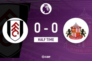 上半场比赛结束,富勒姆0-0桑德兰。