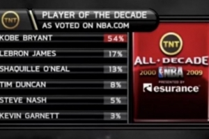 科比自媒体Kobe Bryant Stories & Motivation则晒出了一则多年前TNT电视直播画面,内容为NBA官网2000-2009最佳球员投票结果,科比得票率54%高居第一,第二的詹姆斯和第三的奥尼尔合计得票率30%。