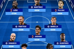 前锋:莱奥(米兰,7000万欧)、劳塔罗(国米,8500万欧)、普利西奇(米兰,6000万欧)