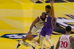 GIF-斯玛特阻挡犯规 湖人挑战失败