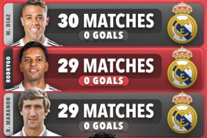 体育资讯11月26日讯 皇马前锋罗德里戈本赛季状态低迷,出战14场比赛1球未进。目前罗德里戈俱乐部连续进球荒已经长达29场,排名皇马队史第2,仅次于30场球荒的马里亚诺。罗德里戈上次代表皇马取得进球,还是今年3月对阵马竞的比赛。