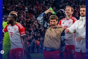 2017年3月十六强战次回合:沃尔科特首开记录,科斯切尔尼染红。莱万扳平比分,罗本、道格拉斯·科斯塔建功,比达尔双响,拜仁再次5-1大胜。